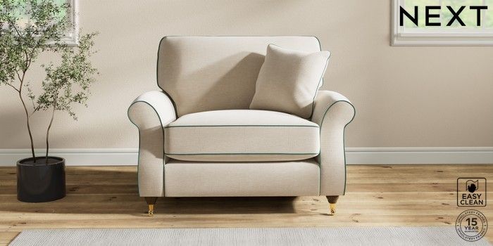 7.3.1 Buy Ashford Relaxed Sit Snuggle Fine Chenille with Contrast Oyster and Dark Juniper Green Castor - Mid from the Next UK online shop Click here to use our accessible website