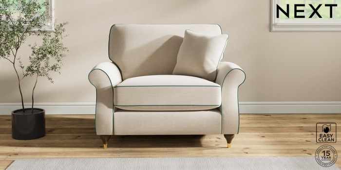 7.3.1 Buy Ashford Relaxed Sit Snuggle Fine Chenille with Contrast Oyster and Dark Juniper Green Modern Turned Metal Cap - Mid from the Next UK online shop Click here to use our accessible website