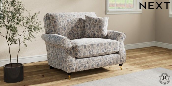 7.3.1 Buy Ashford Relaxed Sit Snuggle Relaxed Linen Look Print Woodblock Floral Blue Castor - Dark from the Next UK online shop Click here to use our accessible website