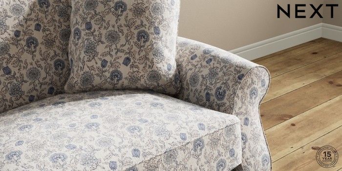 7.3.1 Buy Ashford Relaxed Sit Snuggle Relaxed Linen Look Print Woodblock Floral Blue Modern Turned Metal Cap - Mid from the Next UK online shop Click here to use our accessible website