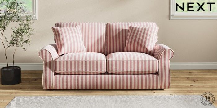7.2.6 Buy Ashford Relaxed Sit Sofa Bed Bold Chenille Stripe Dark Pink Flat Bun - Mid from the Next UK online shop Click here to use our accessible website