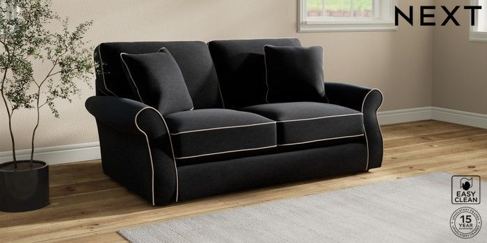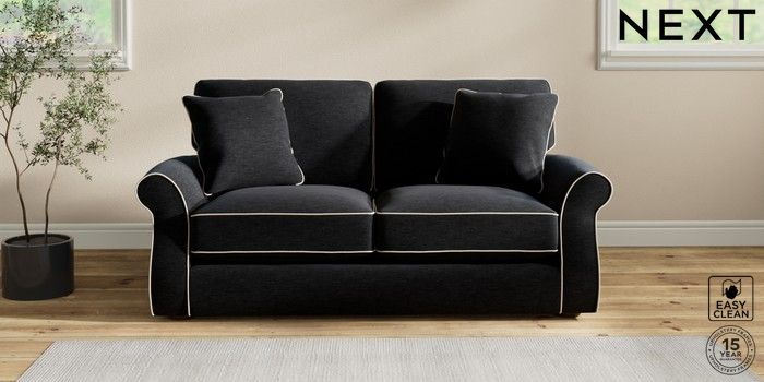 7.3.1 Buy Ashford Relaxed Sit Sofa Bed Fine Chenille with Contrast Black and Oyster Flat Bun - Mid from the Next UK online shop Click here to use our accessible website