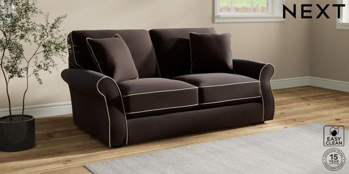 7.3.1 Buy Ashford Relaxed Sit Sofa Bed Fine Chenille with Contrast Chocolate Brown and Oyster Flat Bun - Dark from the Next UK online shop Click here to use our accessible website