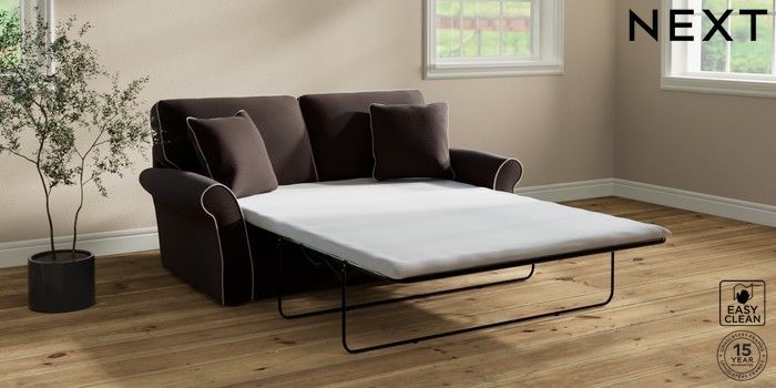 7.3.1 Buy Ashford Relaxed Sit Sofa Bed Fine Chenille with Contrast Chocolate Brown and Oyster Flat Bun - Mid from the Next UK online shop Click here to use our accessible website