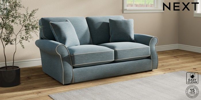 7.3.1 Buy Ashford Relaxed Sit Sofa Bed Fine Chenille with Contrast Mid Blue and Oyster Flat Bun - Dark from the Next UK online shop Click here to use our accessible website