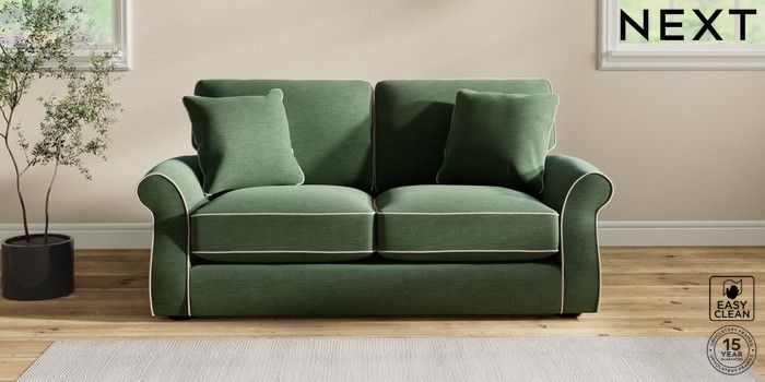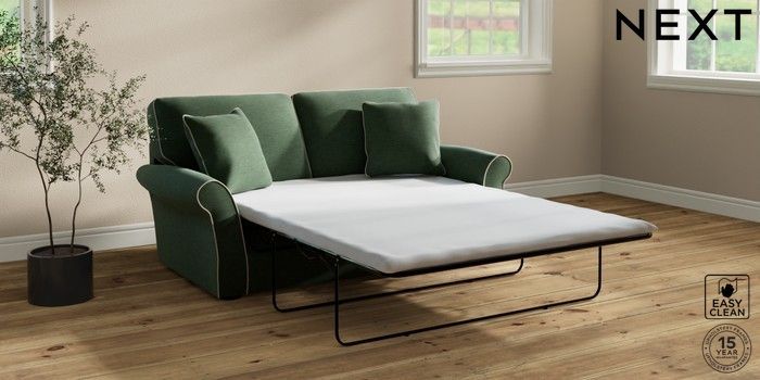 7.3.1 Buy Ashford Relaxed Sit Sofa Bed Fine Chenille with Contrast Mid Khaki Green and Oyster Flat Bun - Dark from the Next UK online shop Click here to use our accessible website