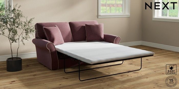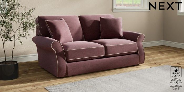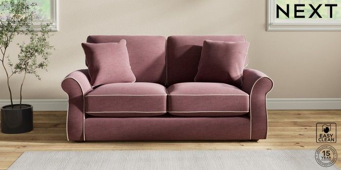 7.3.1 Buy Ashford Relaxed Sit Sofa Bed Fine Chenille with Contrast Mid Mulberry Purple and Oyster Flat Bun - Mid from the Next UK online shop Click here to use our accessible website