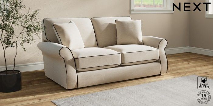 7.3.1 Buy Ashford Relaxed Sit Sofa Bed Fine Chenille with Contrast Oyster and Black Flat Bun - Mid from the Next UK online shop Click here to use our accessible website