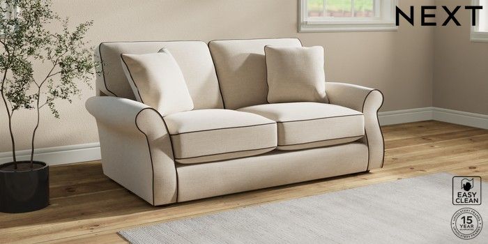 7.3.1 Buy Ashford Relaxed Sit Sofa Bed Fine Chenille with Contrast Oyster and Chocolate Brown Flat Bun - Mid from the Next UK online shop Click here to use our accessible website