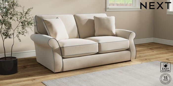 7.3.1 Buy Ashford Relaxed Sit Sofa Bed Fine Chenille with Contrast Oyster and Mid Blue Flat Bun - Mid from the Next UK online shop Click here to use our accessible website