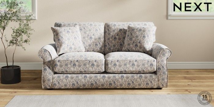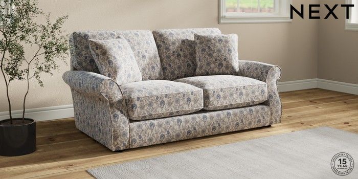 7.3.1 Buy Ashford Relaxed Sit Sofa Bed Relaxed Linen Look Print Woodblock Floral Blue Flat Bun - Dark from the Next UK online shop Click here to use our accessible website