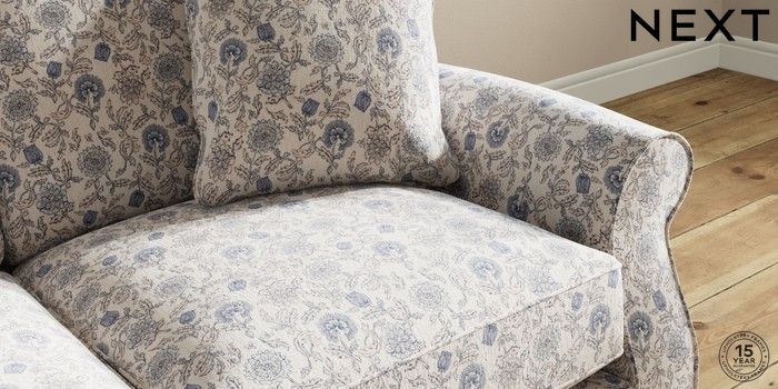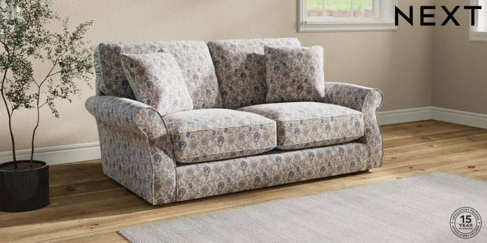 7.3.1 Buy Ashford Relaxed Sit Sofa Bed Relaxed Linen Look Print Woodblock Floral Blue Flat Bun - Light from the Next UK online shop Click here to use our accessible website