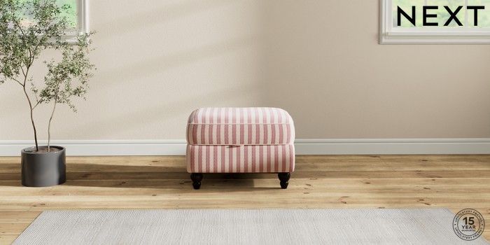 7.2.6 Buy Ashford Relaxed Sit Storage Footstool Bold Chenille Stripe Dark Pink Low Turned - Dark from the Next UK online shop Click here to use our accessible website