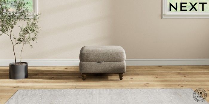 6.12.1 Buy Ashford Relaxed Sit Storage Footstool Cotswold Chenille Mid Mink Brown Low Turned - Mid from the Next UK online shop Click here to use our accessible website