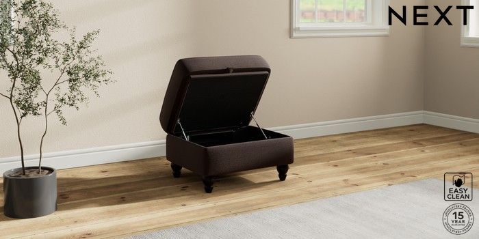 6.12.1 Buy Ashford Relaxed Sit Storage Footstool Fine Chenille Easy Clean Chocolate Brown Low Turned - Dark from the Next UK online shop Click here to use our accessible website