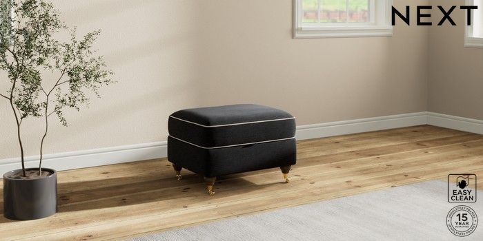 7.3.1 Buy Ashford Relaxed Sit Storage Footstool Fine Chenille with Contrast Black and Oyster Castor - Mid from the Next UK online shop Click here to use our accessible website