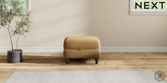 6.12.1 Buy Ashford Relaxed Sit Storage Footstool Luxe Chenille Honey Yellow Low Turned - Mid from the Next UK online shop Click here to use our accessible website