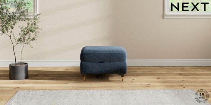 6.12.1 Buy Ashford Relaxed Sit Storage Footstool Ripple Chenille Dark Blue Castor - Mid from the Next UK online shop Click here to use our accessible website
