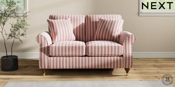 7.2.6 Buy Ashford 2 Seater Small Sofa Bold Chenille Stripe Dark Pink Modern Turned Metal Cap - Mid from the Next UK online shop Click here to use our accessible website