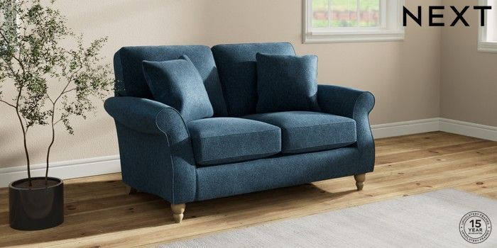 6.12.1 Buy Ashford 2 Seater Small Sofa Cotswold Chenille Dark Blue Low Turned - Light from the Next UK online shop Click here to use our accessible website