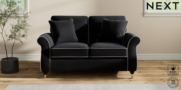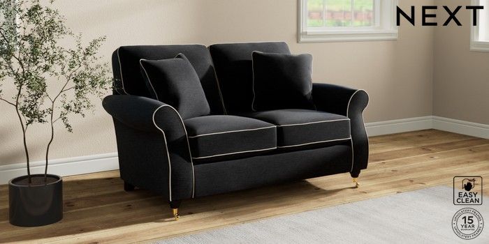 7.3.1 Buy Ashford 2 Seater Small Sofa Fine Chenille with Contrast Black and Oyster Castor - Dark from the Next UK online shop Click here to use our accessible website