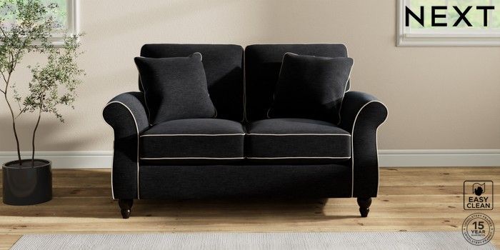 7.3.1 Buy Ashford 2 Seater Small Sofa Fine Chenille with Contrast Black and Oyster Low Turned - Dark from the Next UK online shop Click here to use our accessible website
