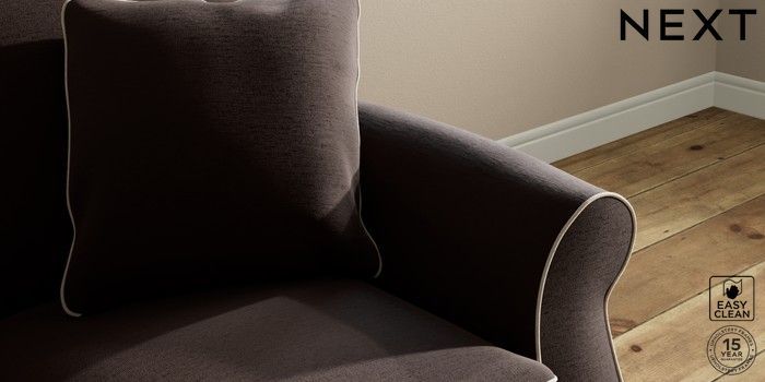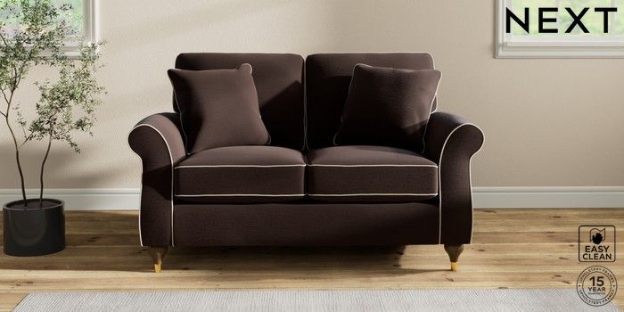 7.3.1 Buy Ashford 2 Seater Small Sofa Fine Chenille with Contrast Chocolate Brown and Oyster Modern Turned Metal Cap - Mid from the Next UK online shop Click here to use our accessible website