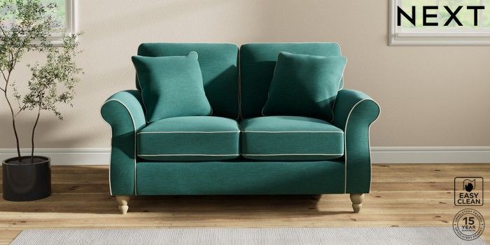 7.3.1 Buy Ashford 2 Seater Small Sofa Fine Chenille with Contrast Dark Juniper Green and Oyster Low Turned - Light from the Next UK online shop Click here to use our accessible website