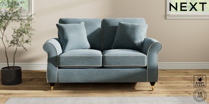 7.3.1 Buy Ashford 2 Seater Small Sofa Fine Chenille with Contrast Mid Blue and Oyster Castor - Dark from the Next UK online shop Click here to use our accessible website