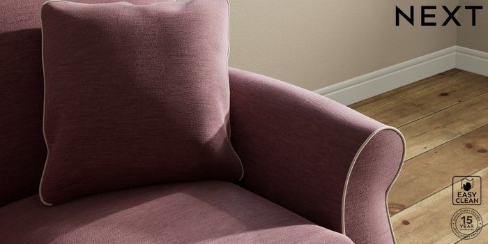 7.3.1 Buy Ashford 2 Seater Small Sofa Fine Chenille with Contrast Mid Mulberry Purple and Oyster Castor - Dark from the Next UK online shop Click here to use our accessible website