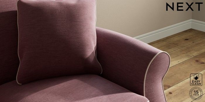 7.3.1 Buy Ashford 2 Seater Small Sofa Fine Chenille with Contrast Mid Mulberry Purple and Oyster Modern Turned Metal Cap - Mid from the Next UK online shop Click here to use our accessible website