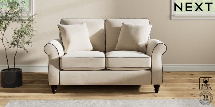 7.3.1 Buy Ashford 2 Seater Small Sofa Fine Chenille with Contrast Oyster and Black Low Turned - Dark from the Next UK online shop Click here to use our accessible website