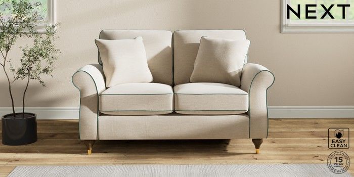 7.3.1 Buy Ashford 2 Seater Small Sofa Fine Chenille with Contrast Oyster and Dark Juniper Green Modern Turned Metal Cap - Mid from the Next UK online shop Click here to use our accessible website