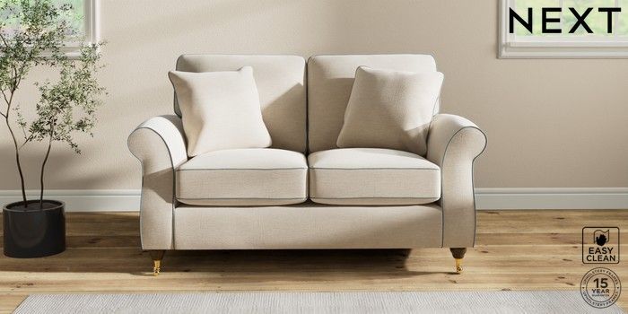 7.3.1 Buy Ashford 2 Seater Small Sofa Fine Chenille with Contrast Oyster and Mid Blue Castor - Mid from the Next UK online shop Click here to use our accessible website