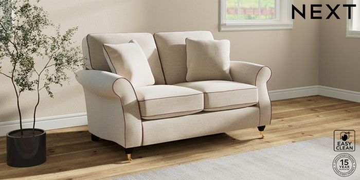7.3.1 Buy Ashford 2 Seater Small Sofa Fine Chenille with Contrast Oyster and Mid Mulberry Purple Castor - Dark from the Next UK online shop Click here to use our accessible website