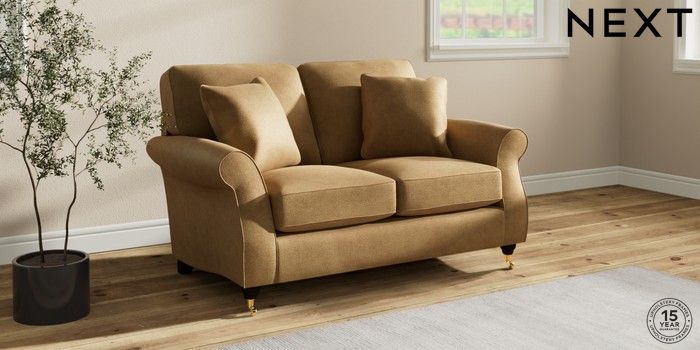 6.12.1 Buy Ashford 2 Seater Small Sofa Luxe Chenille Honey Yellow Castor - Dark from the Next UK online shop Click here to use our accessible website