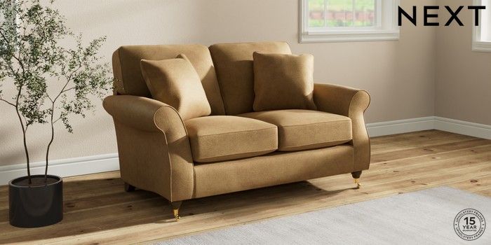 6.12.1 Buy Ashford 2 Seater Small Sofa Luxe Chenille Honey Yellow Castor - Mid from the Next UK online shop Click here to use our accessible website