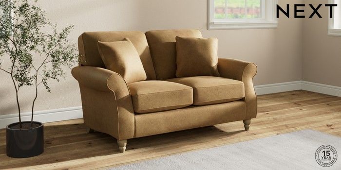 6.12.1 Buy Ashford 2 Seater Small Sofa Luxe Chenille Honey Yellow Low Turned - Light from the Next UK online shop Click here to use our accessible website