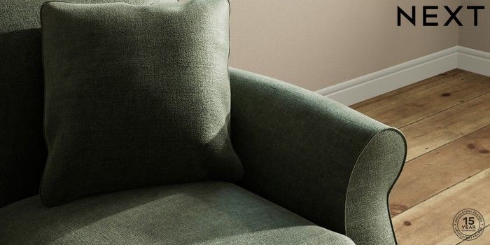 6.12.1 Buy Ashford 2 Seater Small Sofa Luxe Chenille Mid Green Castor - Dark from the Next UK online shop Click here to use our accessible website