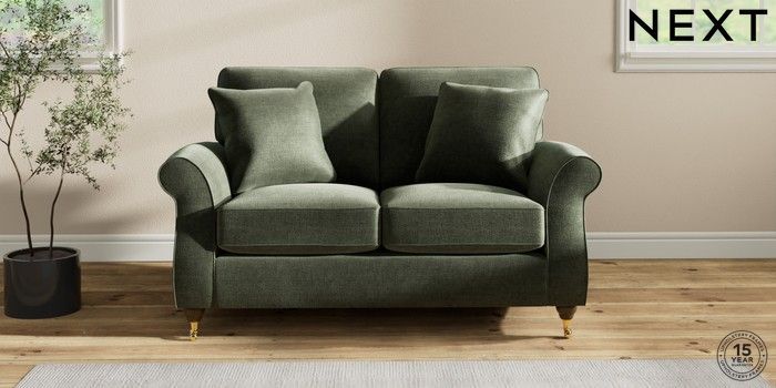 6.12.1 Buy Ashford 2 Seater Small Sofa Luxe Chenille Mid Green Castor - Mid from the Next UK online shop Click here to use our accessible website