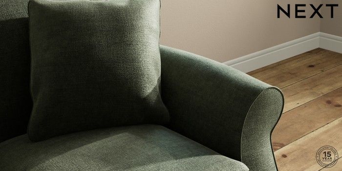 6.12.1 Buy Ashford 2 Seater Small Sofa Luxe Chenille Mid Green Modern Turned Metal Cap - Mid from the Next UK online shop Click here to use our accessible website