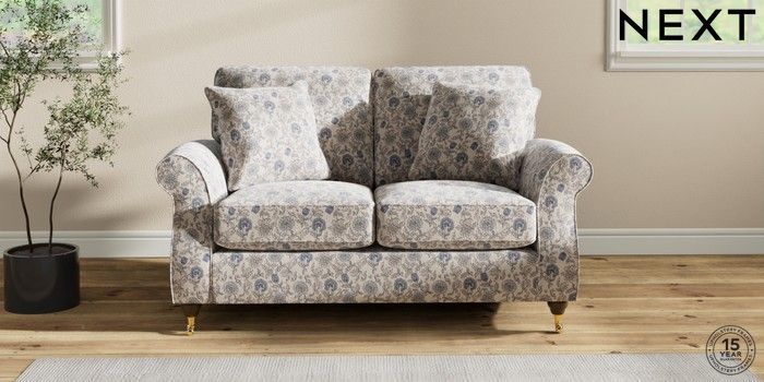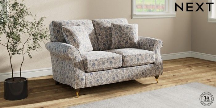 7.3.1 Buy Ashford 2 Seater Small Sofa Relaxed Linen Look Print Woodblock Floral Blue Castor - Mid from the Next UK online shop Click here to use our accessible website