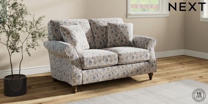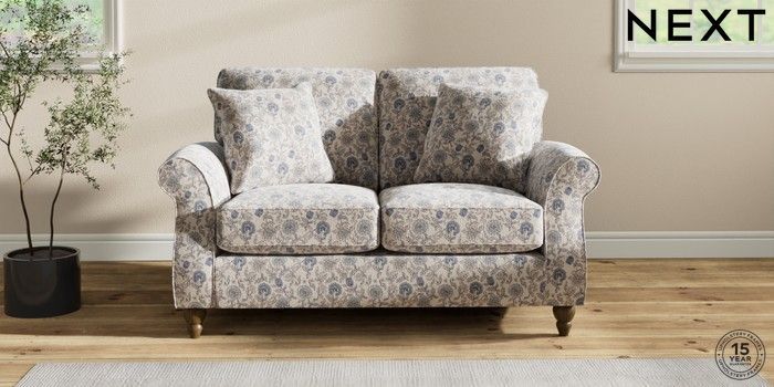 7.3.1 Buy Ashford 2 Seater Small Sofa Relaxed Linen Look Print Woodblock Floral Blue Low Turned - Mid from the Next UK online shop Click here to use our accessible website