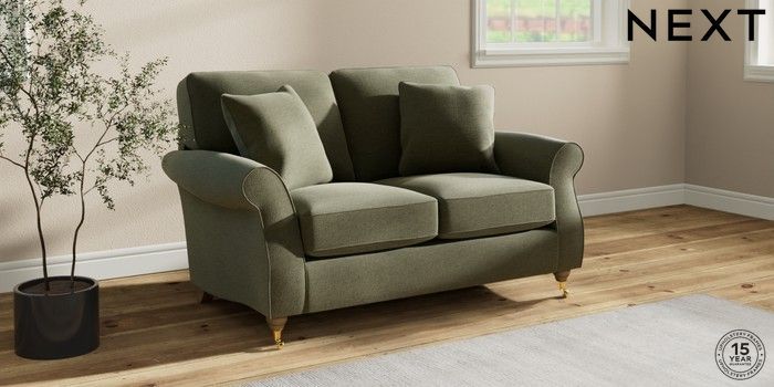 6.12.1 Buy Ashford 2 Seater Small Sofa Ripple Chenille Mid Moss Green Castor - Light from the Next UK online shop Click here to use our accessible website