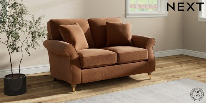 6.12.1 Buy Ashford 2 Seater Small Sofa Ripple Chenille Mid Rust Brown Castor - Light from the Next UK online shop Click here to use our accessible website