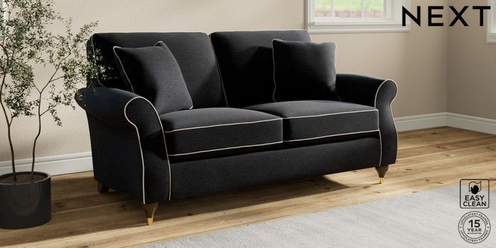7.3.1 Buy Ashford 2 Seater Sofa Fine Chenille with Contrast Black and Oyster Modern Turned Metal Cap - Mid from the Next UK online shop Click here to use our accessible website