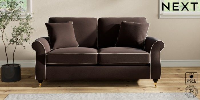 7.3.1 Buy Ashford 2 Seater Sofa Fine Chenille with Contrast Chocolate Brown and Oyster Castor - Dark from the Next UK online shop Click here to use our accessible website