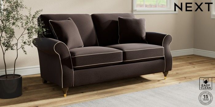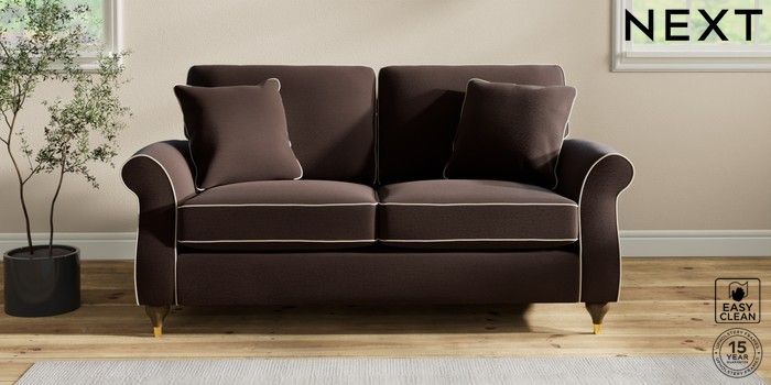 7.3.1 Buy Ashford 2 Seater Sofa Fine Chenille with Contrast Chocolate Brown and Oyster Modern Turned Metal Cap - Mid from the Next UK online shop Click here to use our accessible website