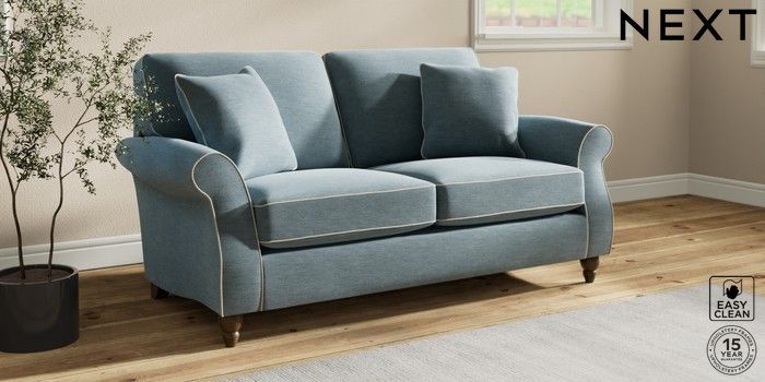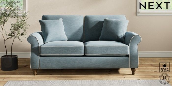 7.3.1 Buy Ashford 2 Seater Sofa Fine Chenille with Contrast Mid Blue and Oyster Low Turned - Mid from the Next UK online shop Click here to use our accessible website