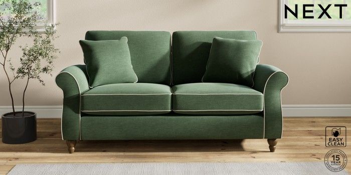 7.3.1 Buy Ashford 2 Seater Sofa Fine Chenille with Contrast Mid Khaki Green and Oyster Low Turned - Mid from the Next UK online shop Click here to use our accessible website